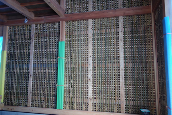 小舞下地は竹、竹と茅(ススキや葦)、雑木の枝などを藁縄で編んでつくる。